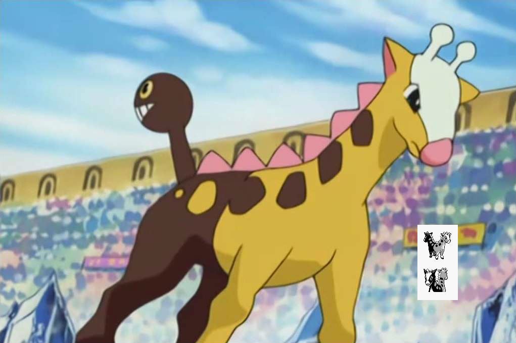 I always had a soft spot for Girafarig, whose name I can't spell to this day. It pleases me to know this dark stalker of the Savannah has a prototype design that's kind of terrifying. See, proto-Girafarig almost looks like its final version, but instead of carrying its dark side in its tail, it has a whole other head—a dark head with an evil grin—hitching a ride on its hindquarters.