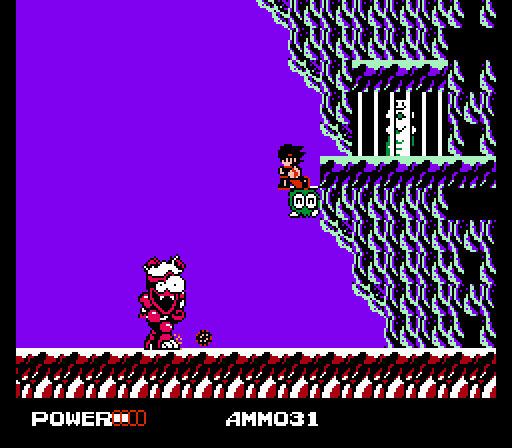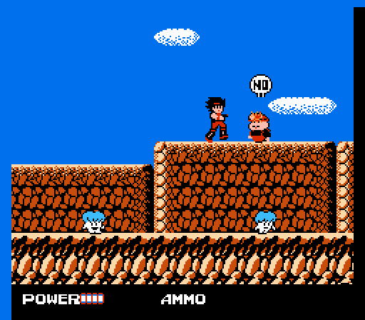 In a lot of ways, Clash was fairly ambitious for a platformer of its vintage. Its world sprawled across an expansive map of dozens of discrete stages linked by various routes, with Bang frequently forced to return to previously explored routes as dictated by the narrative or even to enter stages from a different direction in order to reach otherwise unaccessible areas. Bang could purchase weapons and tools to aid his exploration (the shopkeeper tended store with his tiny daughter by his side, a decidedly Toriyama-esque convention), and the boss encounters were each unique and inventive. It was a flawed game, no doubt, but an entertaining one.