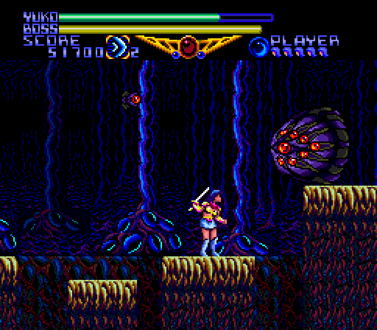Not to say Valis II was a bad game; rather, it was aggressively average. It was your typical run-and-slash melee action game, a descendent of countless arcade titles like Rastan, Dragon Buster, and Magic Sword. And, much like Magic Sword, as protagonist Yuko grew in power she gained the ability to fling energy beams from her blade, progressively turning the adventure more toward the likes of Contra.
