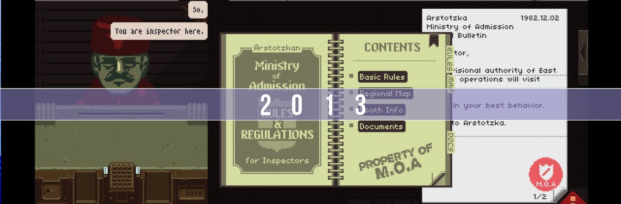 Over the last year, I've had droves of people ask me if I've played Papers, Please, a question I always answer with some form of hesitation. Yes. Sort of. Kinda. I think I played one of the first prototypes of everyone's favorite dystopian document thriller. It was serendipity. I was working under Indiegames Blog's banner back then and was on the hunt for something cool. At the time, the game was mostly just a tech demo -- a skeleton of what it'd later become. I can't recall if I wrote about it, only that I marvelled at what it could potentially become.