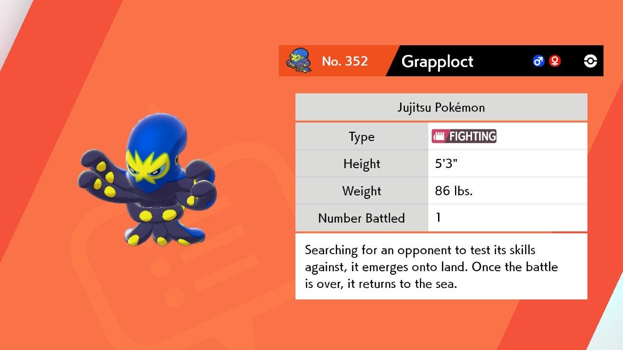 This creature is like a ninja octopus. The first time you see a Grapploct, it's just sitting there waiting for you on Route 9. I think I almost screamed when it ran head-on at me while I rounded the corner. Grapploct looks and acts like a Teenage Mutant Ninja Turtles enemy, bouncing around on the tip of its tentacles, getting ready to slap the enemy creature repeatedly.