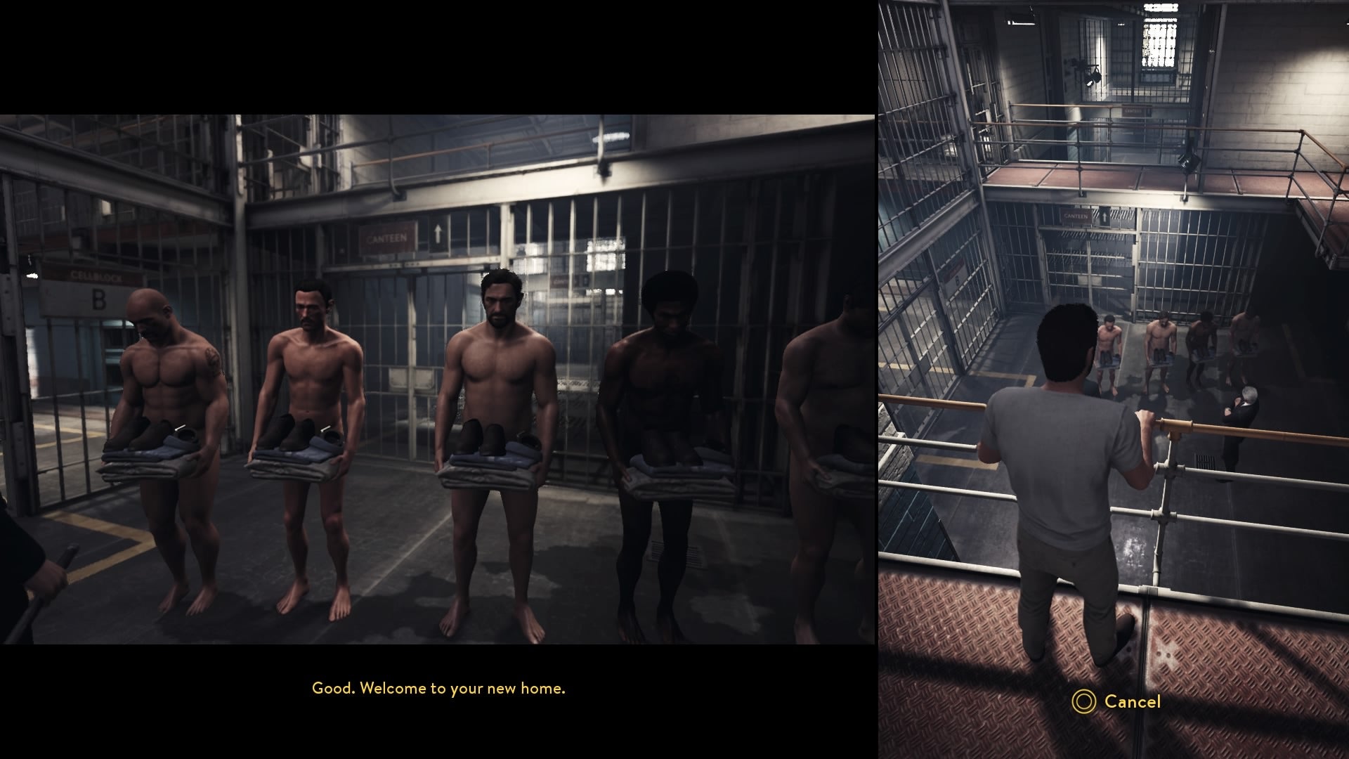 If A Way Out were a television show or a movie, it'd be boring and borderline corny. But in making it a co-op game, Leo and Vincent feel like extensions of the players. They're more engaging because we're the ones controlling their conversations and making choices on their behalves, even if for the most part the choices affect very little: threatening someone or kindly talking out of a situation usually gets the same result, no matter whose way of doing things you choose. As the split-screen sways back and forth (such as one player doing something mundane like lingering around a water cooler and having only a small sliver of the screen, while the other having a serious conversation takes up three-fourths of the screen), the game's envisioning of a co-op adventure feels wholly unique as a shared experience unlike other media, even with its lackluster revenge tale.