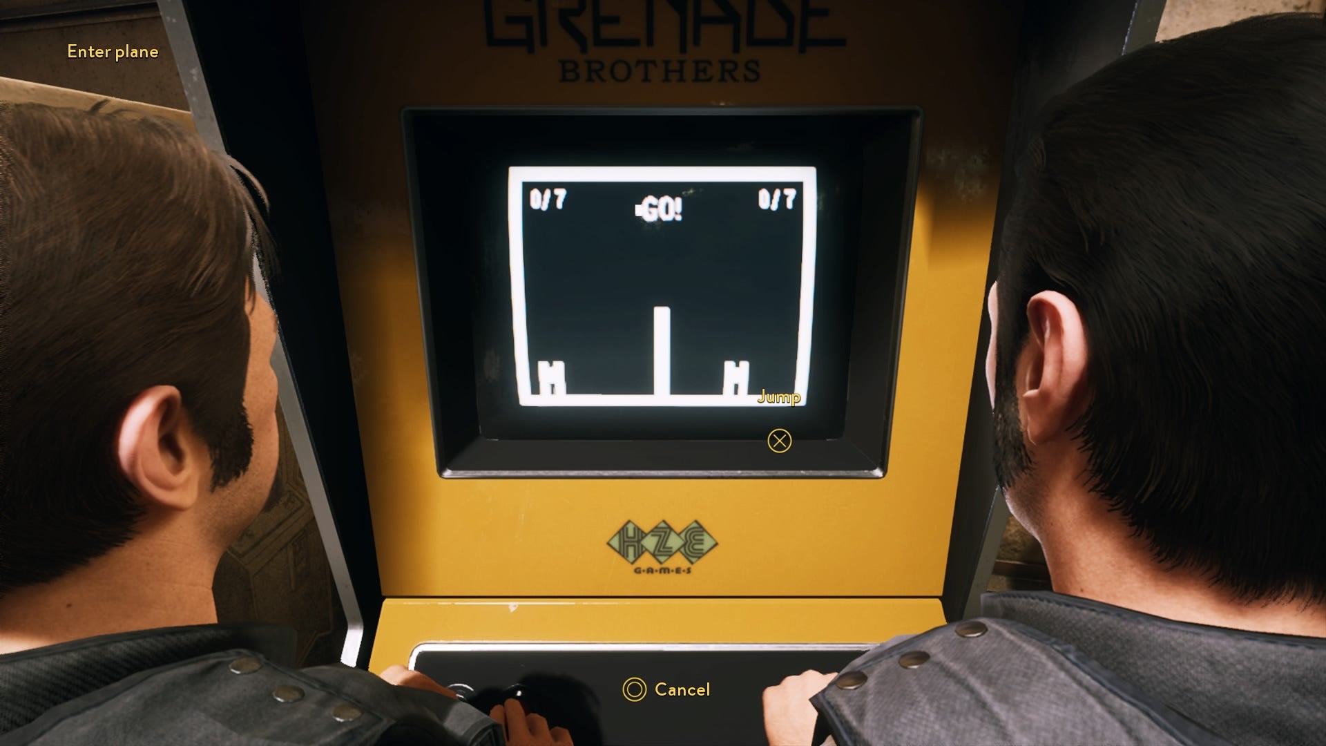 Luckily these combat sequences are relatively few, even if they feel like they take ages because of how rough they are. (This was the point where I had to coax my partner who usually doesn't like games and tell him that I think we were sorta nearing the end.) The game as a whole takes about six-to-eight hours on a first playthrough, depending on how many side activities and minigames you go out of your way to complete, like playing an arcade cabinet. There's a fair amount of replay value too, with the option to play the game as the character you didn't choose at the start (this is also swappable upon exiting the game and re-entering it, so one's not necessarily stuck with Vincent or Leo the whole way through) and choose their dialogue choices firsthand instead of just hearing what the other player chooses. There are also several different "big" choices that can play out differently depending on the players' unified decision, including an intense one at the end.
