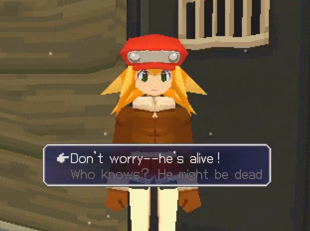 Why turn bad, then? It's the only way to access Mega Man Legends 2's black market, which peddles unique items. You can also make Roll lose faith in humanity by saying "Leave me alone, busybody!" It's cruel, but it's also kind of funny.