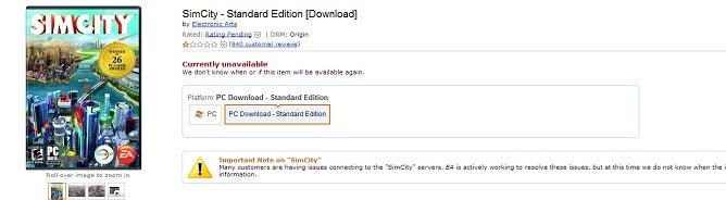 Amazon no long offering digital edition of SimCity for sale