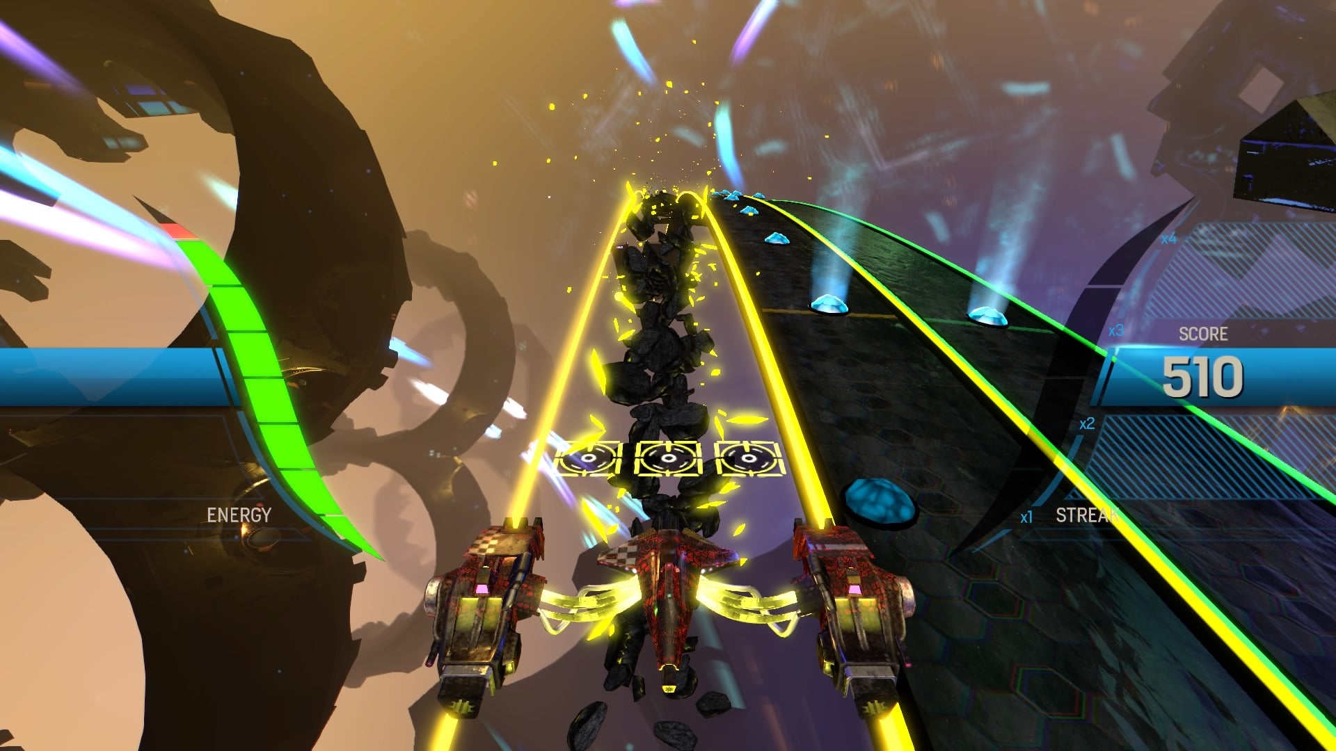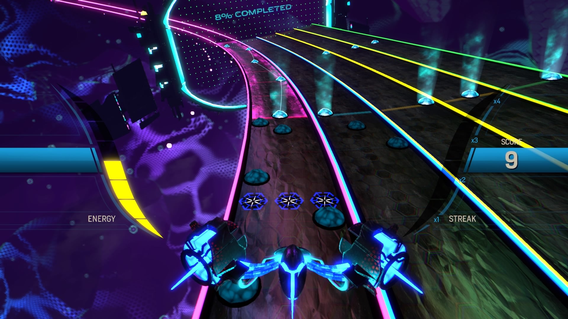 The game has two basic modes: Campaign and Quickplay. The former is a jaunt through a 15-song concept album that essentially represents a journey into the mind of a comatose patient who's been experimenting with synesthesia. Tracks are tackled one at a time, and slowly become faster and more complex as you progress through the 15-song set. The goal is to simply play through all the tracks, which concludes the Campaign.