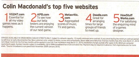 Realtime Worlds studio manager Colin Macdonald has told Brit paper the Daily Telegraph that VG247's his favourite website. He likes it more than APB.com, apparently.