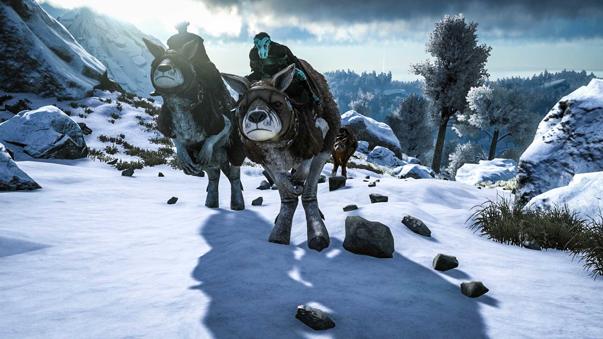 In doing so it became a contender for my personal game of the year award, and I was vastly disappointed to discover my ageing PC just can't run it. Luckily, the Xbox One version has received its first update, which just so happens to include pre-history's greatest ultra-bouncy two person mount. In case you've forgotten, the Procoptodon can easily leap obstacles, and an passenger player can use weapons. Rad.