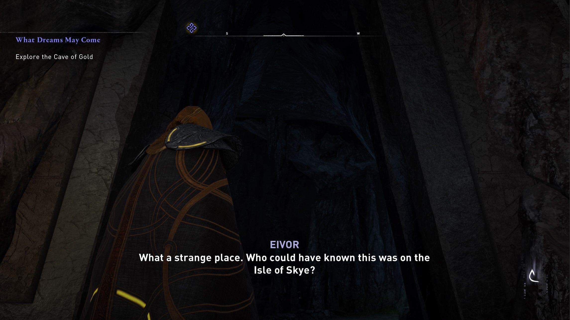 After collecting the lustrous shards from around the Isle of Skye in Assassin's Creed Valhalla, Eivor opens the Cave of Gold and ventures inside.