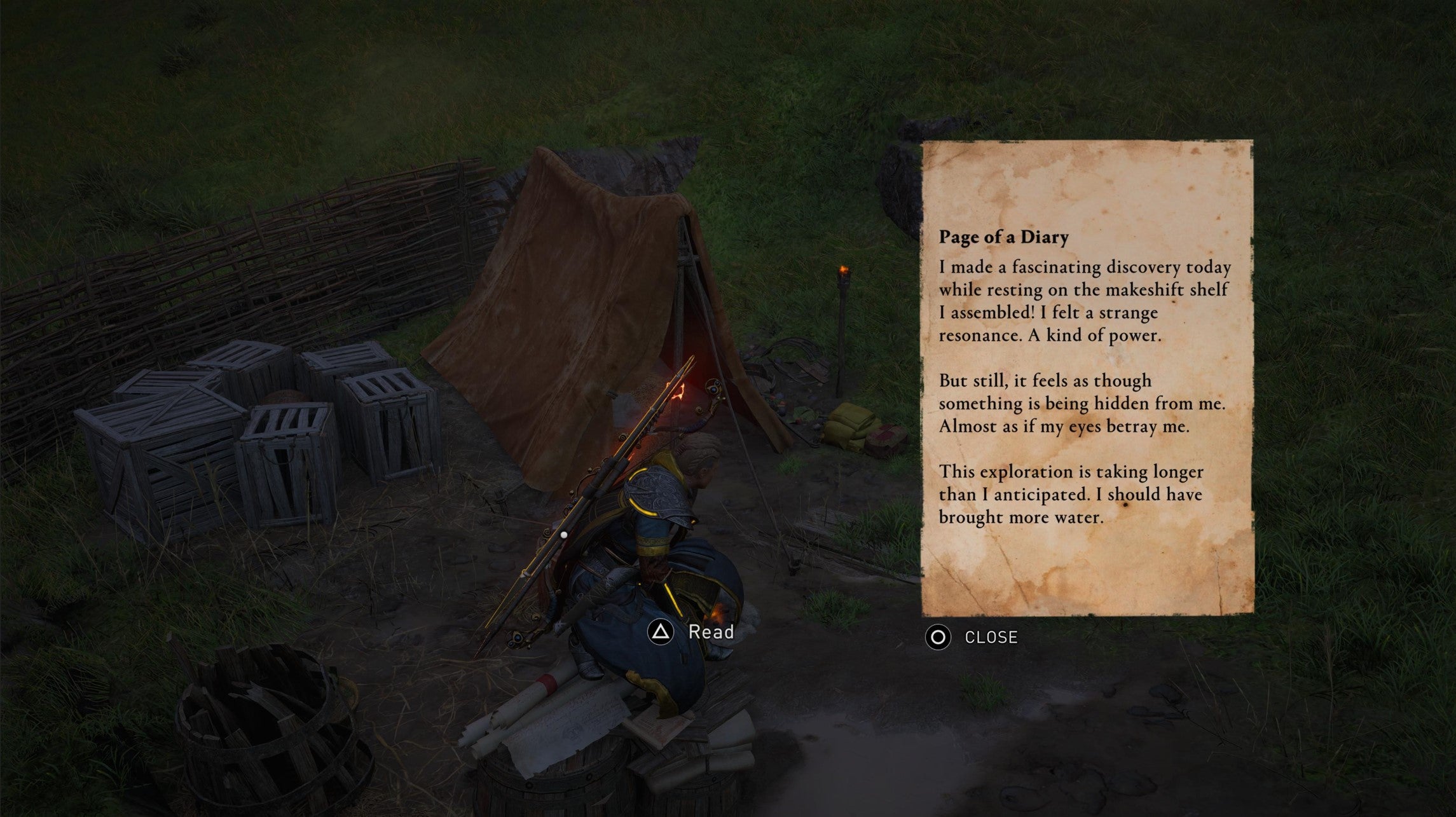 Next, go over to your left, where you'll see a readable note and a lootable chest.