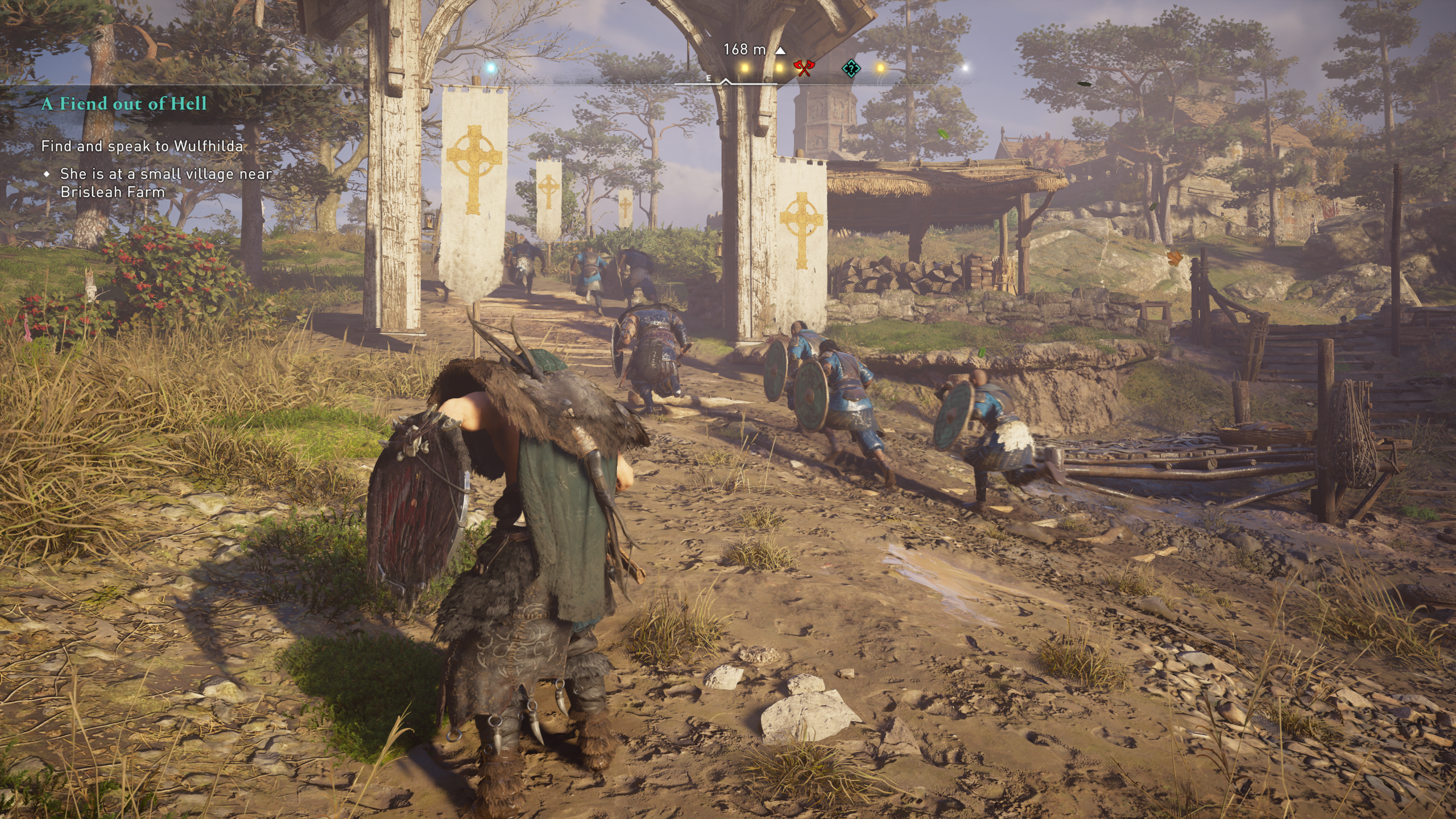 When it comes to combat and enemy encampments, Valhalla does manage to break the cycle of the traditional stealth-infiltration loop that was seemingly copied and pasted in every inch of Odyssey’s map. Instead, we have ‘Raids’, which are sieges on settlements or encampments that you’re able to activate when you’re in the area. When you initiate a raid in an appropriate area, you’re able to tackle all the enemies in that encampment head-on, with a band of raiders that you can recruit and select by your side. The raid ends when you’ve collected three pieces of loot that are scattered in the encampment.