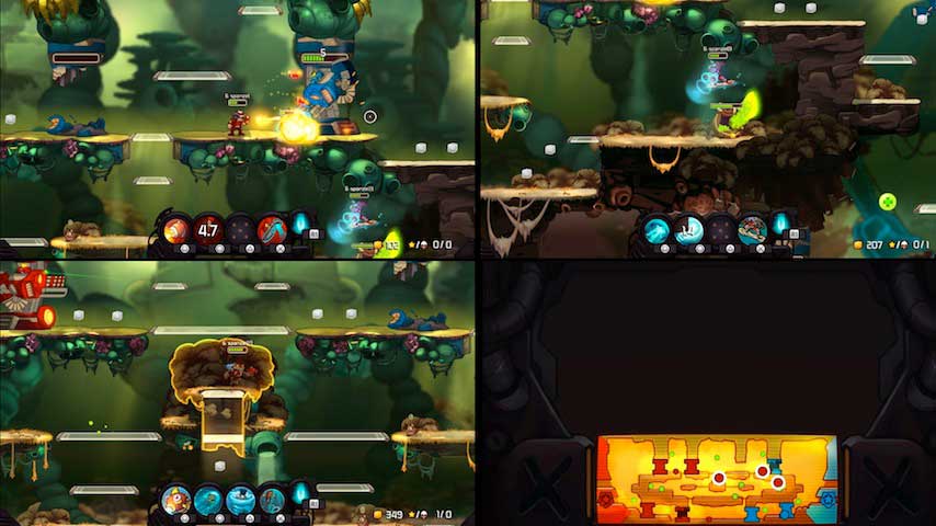 Awesomenauts is a 3v3 arena battle affair, and has sold over 1 million copies on existing platforms. The PS4 version offers 15 characters, local splitscreen for three players, drop-in online matchmaking, new customisation skins and a new map.