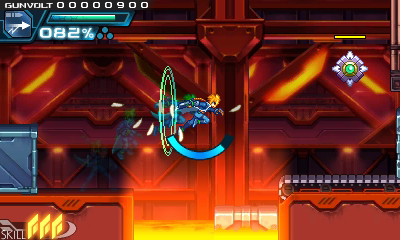 InterfaceBecause Gunvolt looks so much like Mega Man, you'll probably try to play it like Mega Man. This would be a terrible mistake. But it's worth mastering.