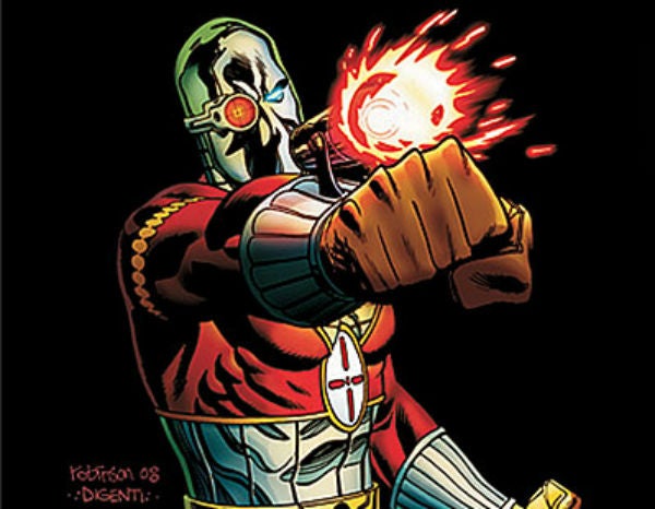 Deathstroke the Terminator is the full supervillain name of Slade Wilson, a merc and assassin with heightened agility, strength, mental prowess, and reflexes. His first appearance was in New Teen Titans #2 in 1980 and the character was created by Marv Wolfman and George Perez. Deathstroke is an anti-Captain America, the result of a US Army program to create superpowered soldiers.