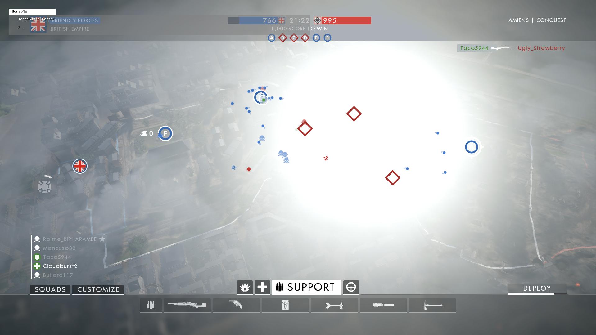 If you've been lucky enough not to have encountered this issue, it manifests in a couple of different ways: as a blinding white, yellow or red light around the C point, or as a blue, red or green screen tint. It even affects map view, as shown in the image above from Redditor Nucleic_Acid. Want another look? Here's a video of how this weird Battlefield 1 issue appears to YouTuber Bricksandmortars.