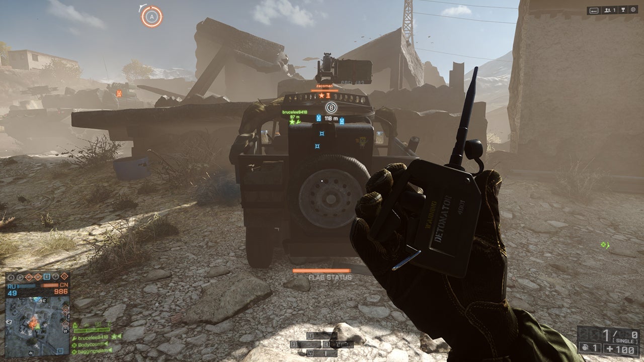 If driving is more your speed, the C4 bus is a strategy that dates all the way back to Battlefield 2. Just stick an obscene amount of plastic explosive onto an ATV, Jeep, Chopper, Tank or whatever you have on hand that will make its way to the piece of enemy armor the fastest. Then smash the bombed up vehicle right into the enemy and blow the whole thing into kingdom come. You can also swap out those C4 charges with mines—or even claymores for some infantry road kill trolling fun. Again you're pretty much an easy target roaming around with explosives. Even hitting a tree the wrong way can be the end of you, so expect a quick death when anything goes wrong.