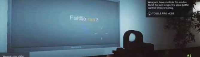 You'll find these TV screens in the second campaign mission, in the hallways of the Singapore hotel. You need to look at them from an angle for the word 'Faith' to appear. Neat no?