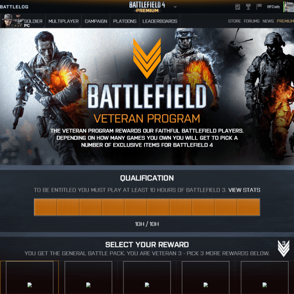 Battlefield 4 players appear to be getting some kind of new incentive out of DICE called the Veteran program, according to a new Battlelog page that popped up recently.