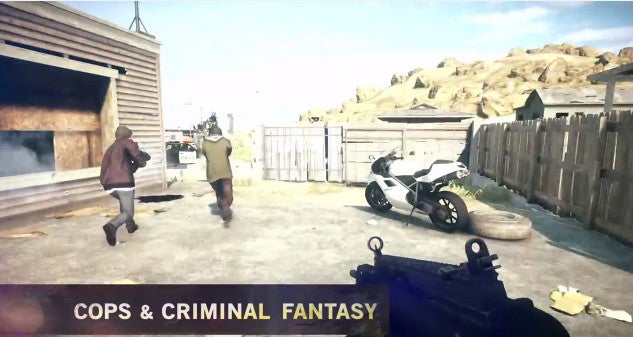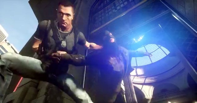 Multiplayer was also mentioned, starting with a clip of players zip-lining from one rooftop to another, and one guy even slides right into a vent shaft. There's a zip-line gun that can be used to scale sheer walls, mention of a hostage rescue mode as SWAT, and bank heists as the criminals.
