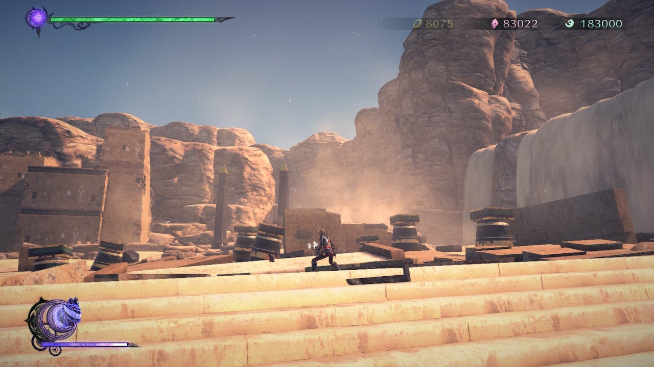 Your reward for completing these ‘Phenomenal Remnants’? Depending on the rank you get from clearing it (ranging from Stone for poor, to Pure Platinum for perfect), you’ll get a set of currency which you can spend in Rodin’s shop, and – more importantly – either a full Witch Heart or Moon Peal that can be used to increase your health or magic, respectively, via the Skills Menu. You can open that and apply any earned Witch Hearts by hitting the – key and tabbing over to the ‘Skills’ section.