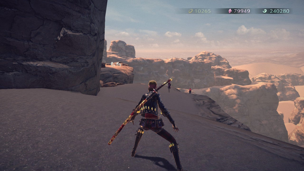 Very shortly after this, you’ll climb up a spiral rock formation and you’ll see the Crow perched o a rock at the top. This one is tricky; you’re going to want to equip Simoon and turn into your eagle form and try to match the Crow’s ascent and descent as it flies. We did this by chasing after it, then hitting B once as the Crow flies up, catching it in the air. Good luck.