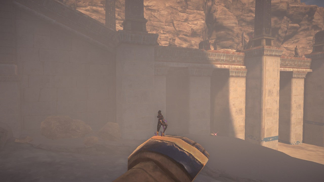 The Cat is in the same area; head to the middle of this part of the map, where there are some broken pillars in the stream of quicksand. You’ll see the Cat getting some sun in the middle, on some broken stairs. We found the best way to get the cat was to chase it across the central stack of pillars so it rests on the flat platform towards the end of the level. Dash, hop and wire zip to the platform with a good aim, and you’ll catch it before it has a chance to run away.