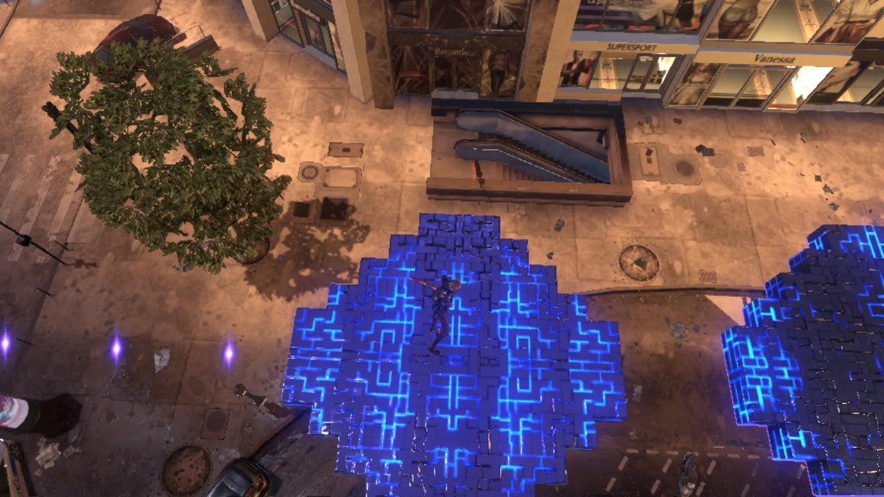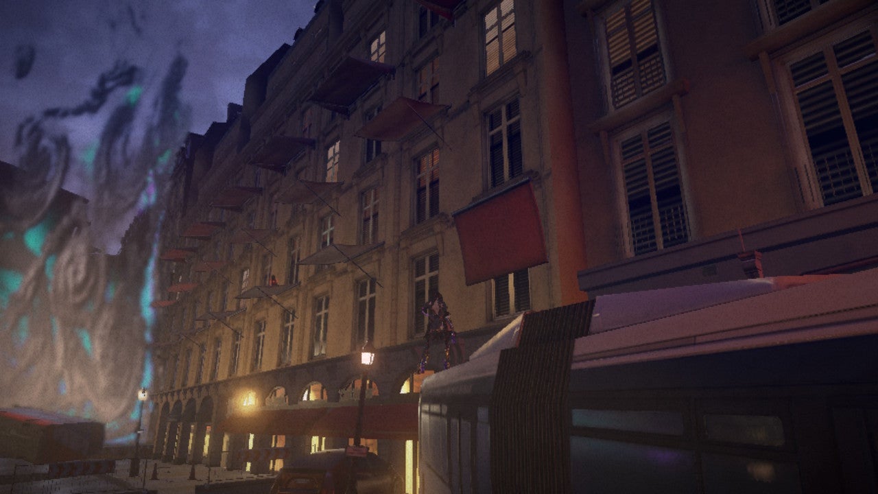 Once you’re out of the dark, come out the tunnel and make an immediate U-turn. Head down the alley behind you, and you’ll see a challenge portal that’ll take you to Verse 3. Here, there’ll be a Cat meowing above you on a series of awnings that collapse when you stand on them. Pressure the Cat to the end, and it’ll try to hop up to an awning – you can catch it as it leaps if you position yourself well.