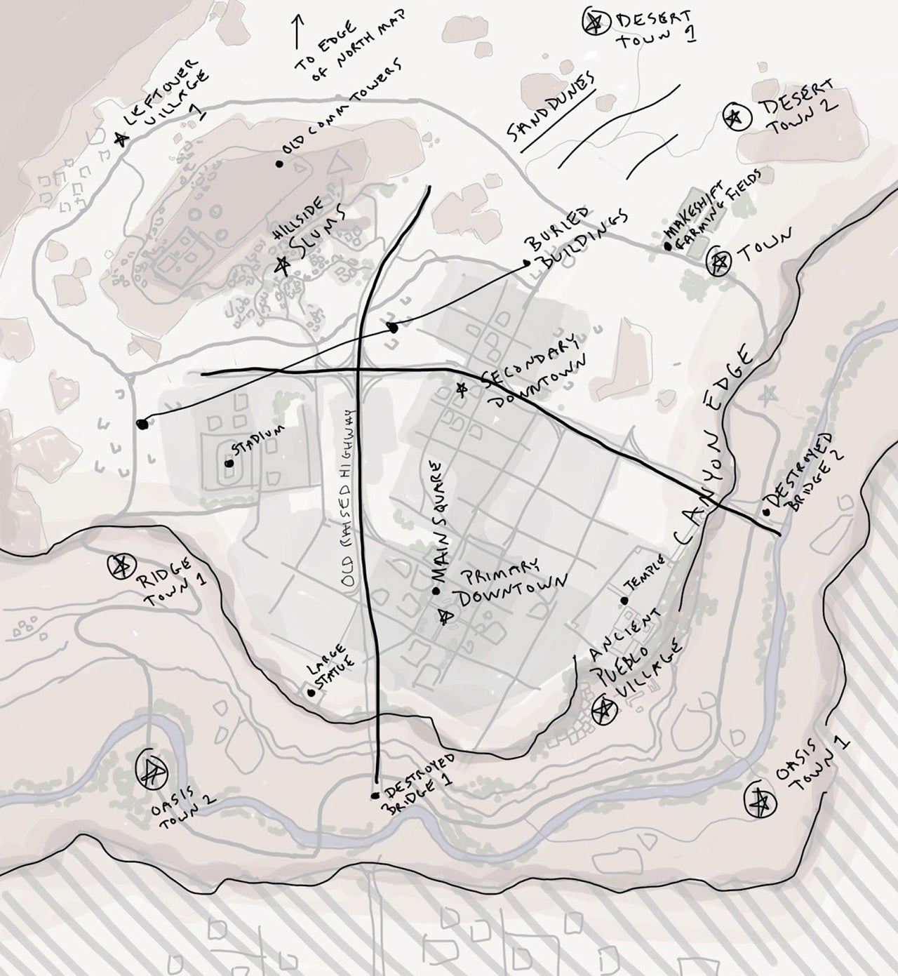 Jang attributes the experience the team had in building Erangel in enlightening the design of Miramar, even with a new principle mechanic in mind. "[Vaulting] guided the design of a number of the map’s areas," writes Jang. "We also wanted to create a map that was very distinct from Erangel. Miramar wouldn’t exist without Erangel. [...] We used all the lessons learned from creating and tuning Erangel for over 6 months to create Miramar."