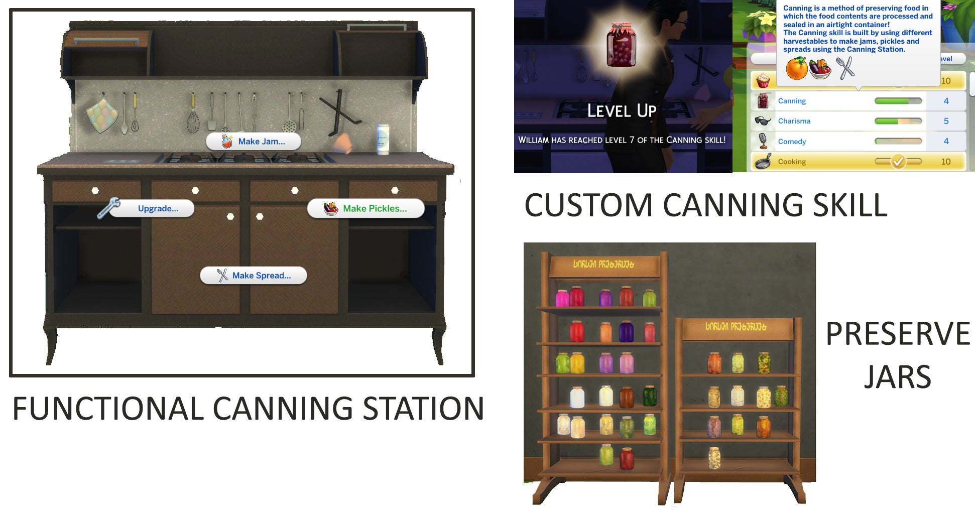 The Functional Canning Station recreates the canning mod that was popular back in the Sims 3 days. It's developed by modder icemunmun, and let's players create their own range of preserves and canned food products. It's an awesome pastime and a great way to specialize a particular Sim.