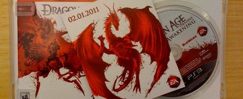 A teaser card, with the series trademark logo, is packed in with US retail copies of Dragon Age: Origins expansion, Awakening.
