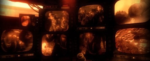 If you click on the link there, you'll see eight security screens, and each one shows bad things happening to people - along with shambling rot coming down the halls. Creepy.