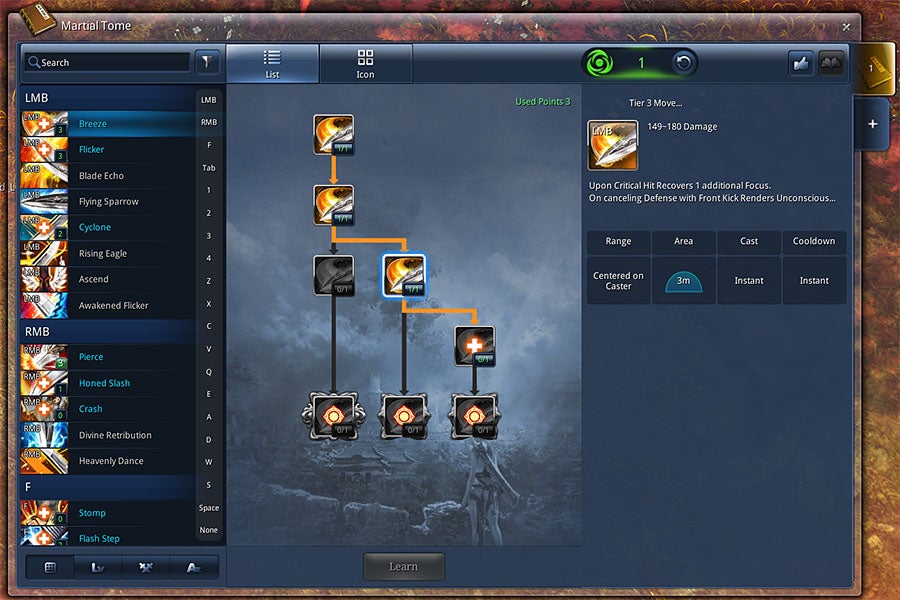 Within each class, there's a ton of variety. The skill system in Blade & Soul has you spending points to customize every single one of your abilities. For example, if you're a Kung Fu Master - my class of choice - you have five different abilities activated by hitting Tab. If you've chosen Flying Slam (a charge move) as your Tab ability, there's still five Tiers of changes within that one move that you can spec for. Perhaps, you'd like your Flying Slam to heal for the amount of damage dealt, or refresh the cooldown of other moves, or simply do more damage. That's just changes to a single move. Even before you get to PVP, finding a good spec is a mountain's worth of work, but it's important if you're going to be PVPing or doing dungeons on a regular basis.