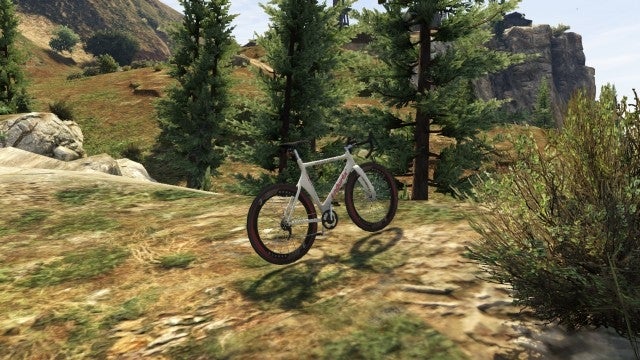 I did a fair amount of leisure cycling in GTA 5's story mode, partly as relief from the sheer psychological impact of the characters' downright awfulness. That, and the simple fact that the great outdoors is a fabulous place to explore by bike. There's a multitude of downhill runs to find, marked or otherwise. In these cartoonish descents, the pace is always exhilarating and the leniency GTA 5 gives you is often brilliantly comedic.