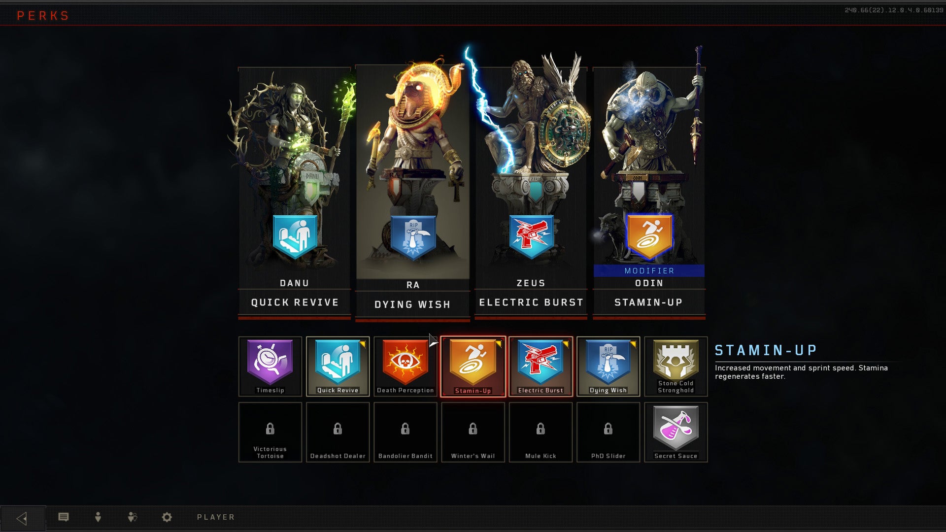 The Perk system has changed a quite a bit from Black Ops 3. In this newest Zombies entry, you choose your perks ahead of time out of a list of the ones you have unlocked. Those perks remain inactive during play until you interact with an object on the map: it's soda machines in Blood of the Dead and god statues in IX, for example. The object will activate the perk in the slot associated with it. A statue of Ra will activate whatever you have equipped in the Ra slot.