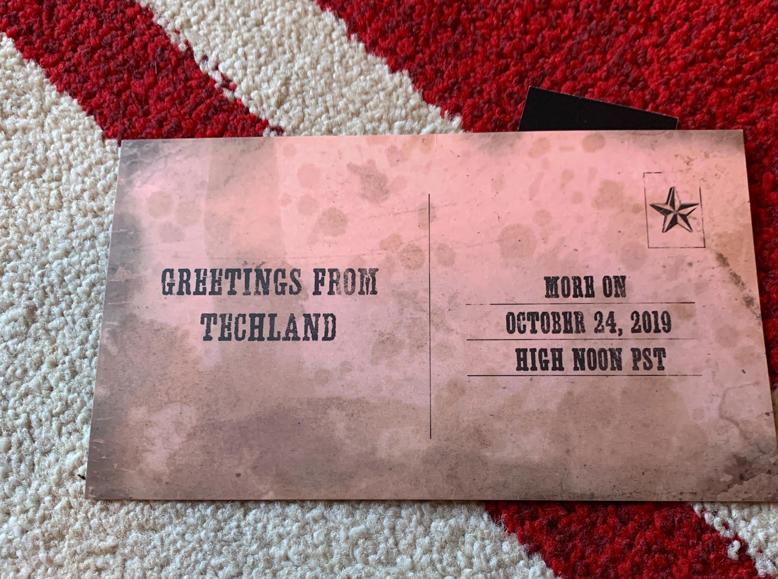 The only thing that stands out is the gunslinger playing a on Switch. The screen shows what is most likely Call of Juarez: Gunslinger, the last game in the series. The postcard also promises a reveal a week from now, on Thursday, October 24 at high noon PT, which is 3pm ET, 8pm CST.