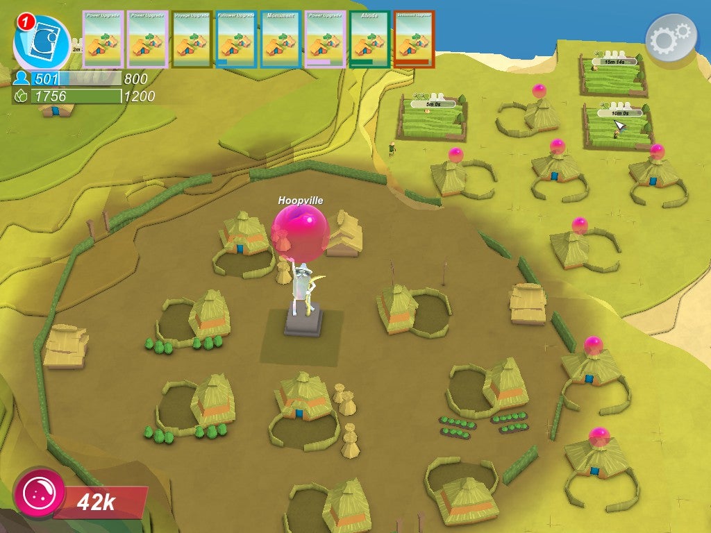 Elsewhere, Godus 2.0 has also tinkered with the progression system, swapping out a scrapbook of cards you collect in order to unlock new perks and abilities in favour of a timeline of cards which theoretically gives you a little more freedom. Cards still open up when you reach certain population or grain targets or repair shrines, and most cards still then need to be unlocked by applying resources, which now come in the form of stickers.
