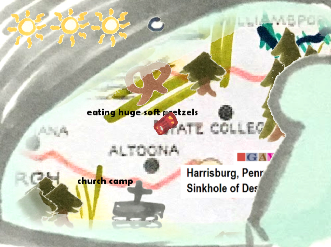 This year, I found myself drawn to Road Trip, from Scotland-based game designer Emilie M. Reed. Usually, the participating games in FlatJam catalogue a specific moment of the creator's life in 2017. Road Trip is different though: instead of capturing a moment that really happened, it captures a dream of going on a road trip for Reed, or "a fantasy that seems out of reach" as the description reads. You can play the collage-like flat driving game from your browser on itch.io.