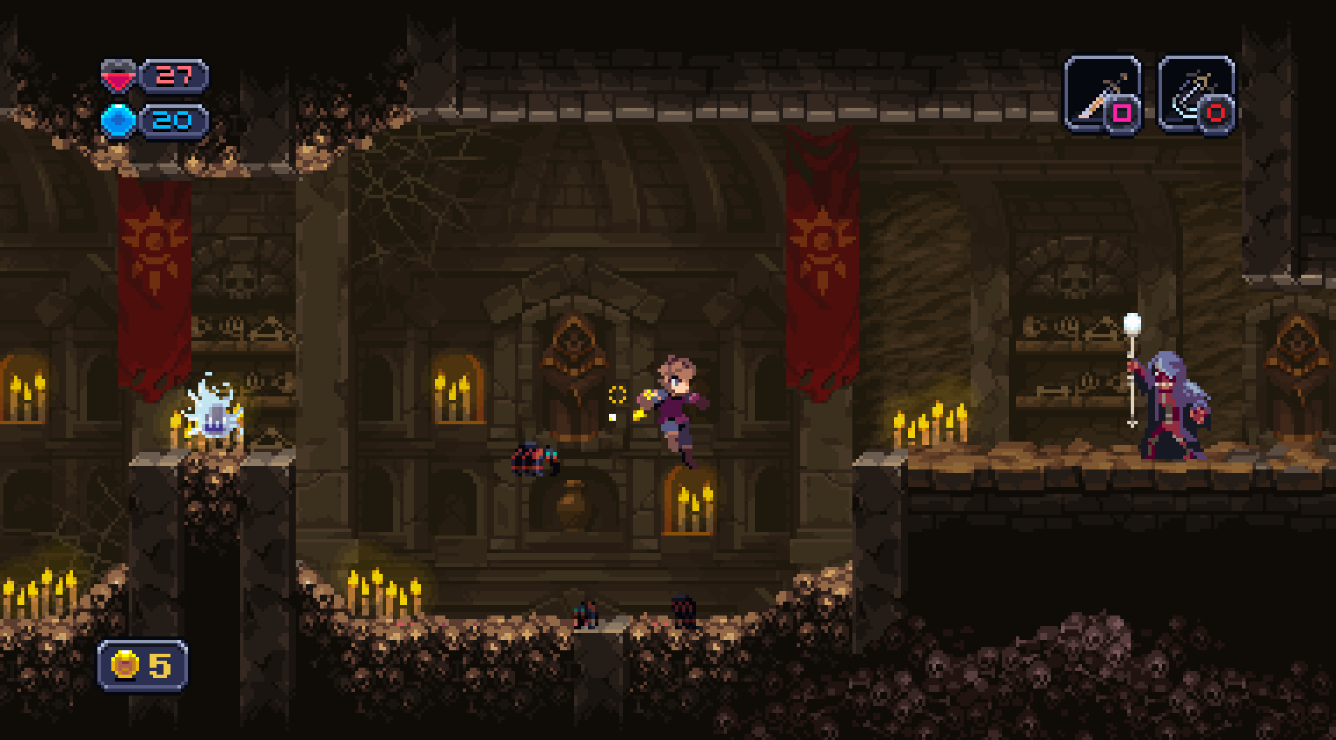 Chasm uses a combination of procedural-generation and hand-crafted rooms to assemble its game map for each playthrough. There will be six massive regions in total, each with their own enemies and bosses to overcome. Over time, you'll be able to customize your character with armor, weapons, and spells, while finding ways to reach previously inaccessible areas.