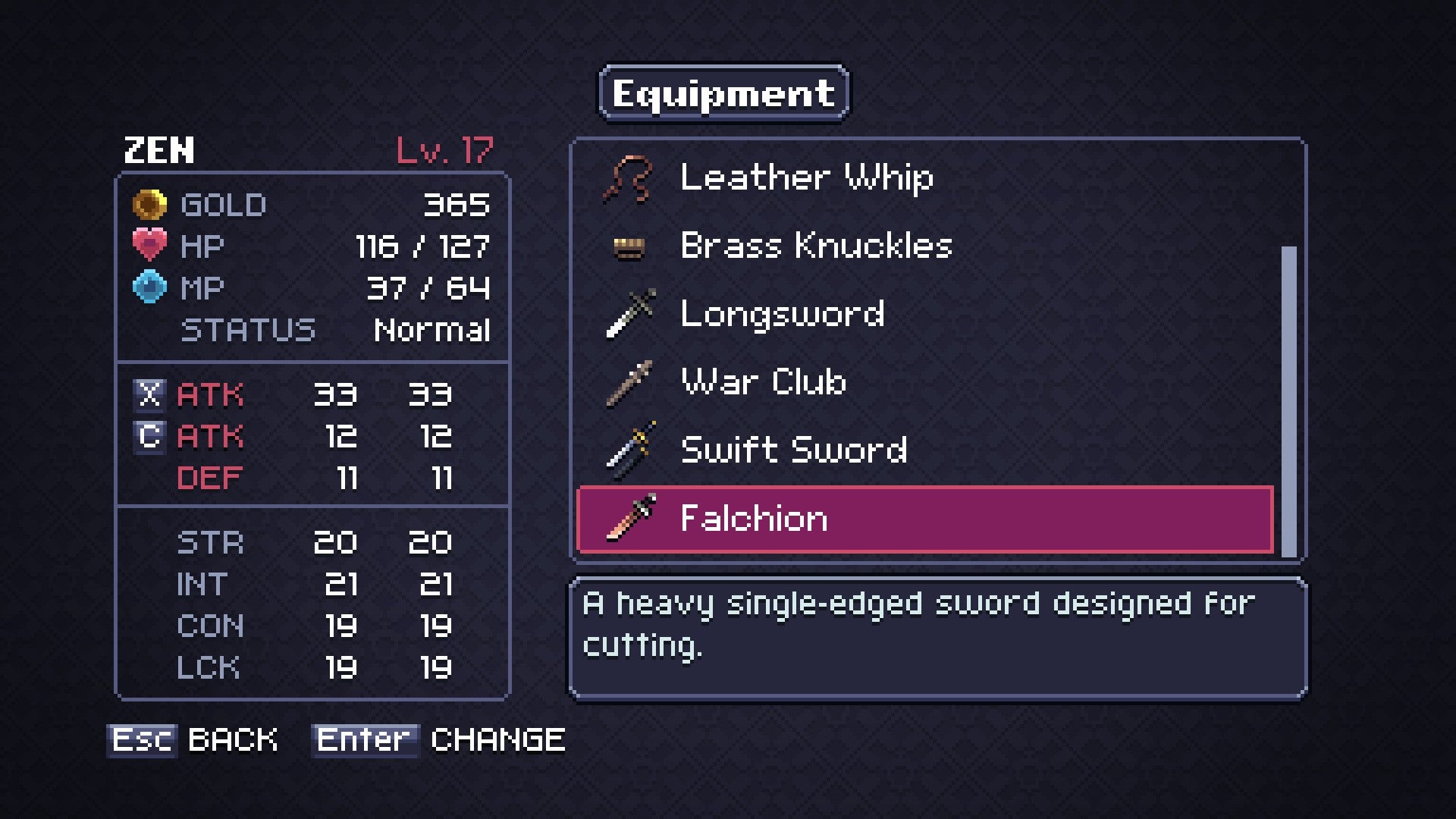 The combat ability is more of a function of time played. Being able to tackle bosses and mobs with your own skill will save you resources like healing items, but it's not as important. As you kill lowly kobolds, wasps, and the undead, you'll gain experience and levels. You'll also find various equipment to increase your stats, which is separated out into Main Hand, Off Hand, Head, Body, and Accessory slots. Main Hand weapons are the physical items you swing around, comprised of swords, whips, hammers, and whatnot. Off Hand weapons are magic-based, drawing from your MP gauge.