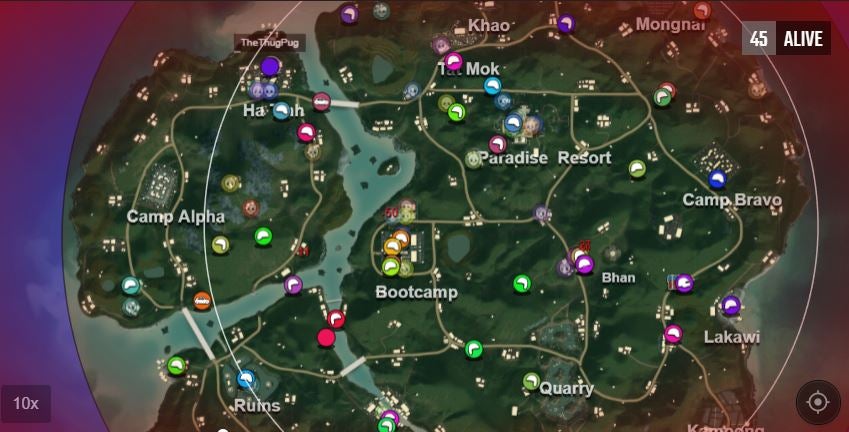 All replays get turned into an amusing 2D representation of the match that not only lets you jump between players like PUBG's in-game tool allows, it doesn't have the 2Km radius limitation. The developers added many animations to make the action look better, as well as alerts for kills and knock-outs.