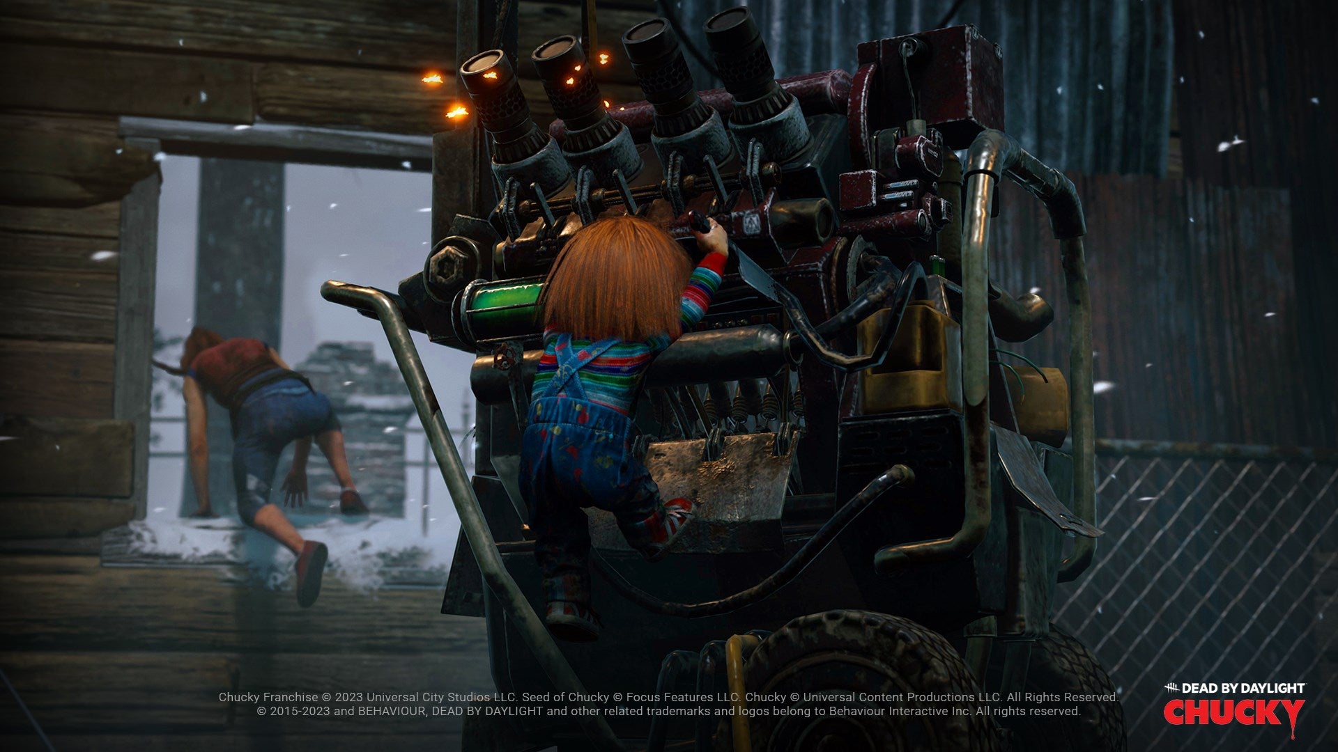 In the game, Chucky will use the Slice & Dice ability, and his former human form, Charles Lee Ray, will assist him in spirit form. He also has the Scamper ability, allowing him to crawl under pallets and burst through windows.