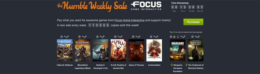 Focus Home Interactive is the star of the latest Humble Weekly Sale, which packs in a wide variety of genres and developers. Pay what you want for Cities XL Platinum, Blood Bowl: Legendary Edition, Divinity 2: Developer's Cut, R.A.W. Realms of Ancient War, Game of Thrones and Confrontation, and pony up more than $6 for Wargame: European Escalation and The Testament of Sherlock Holmes. Only Wargame: European Escalation is available for anything but PC - you can get it on Mac and Linux - and Steam keys are available for all titles. The deal includes soundtracks for Divinity II, Confrontation and The Testament of Sherlock Holmes. As ever, you decide how profits are split between publisher, organisers and charities - the Red Cross and Child's Play. The deal is only valid for a limited time so get in quick.