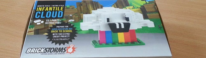 That, there, is an Infantile Cloud play-set by Brickstorms. You'll find this happy chappie in Guild Wars 2's Super Adventure Box update, and you can get your very own version by entering our competition. We're told the bricks fit perfectly with Lego play-sets too.