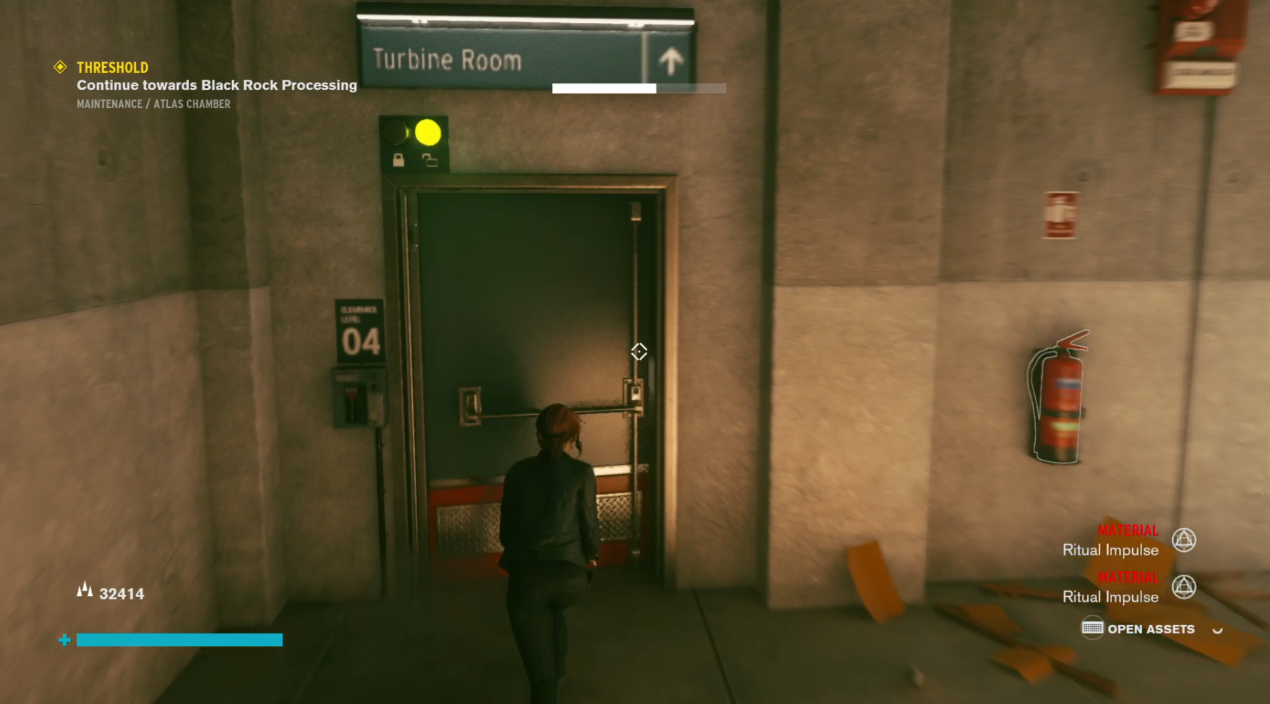 Head through the door to Black Rock Processing, deal with the goons inside the security room, and instead of going through the door with the chasm, head into the Turbine Room.