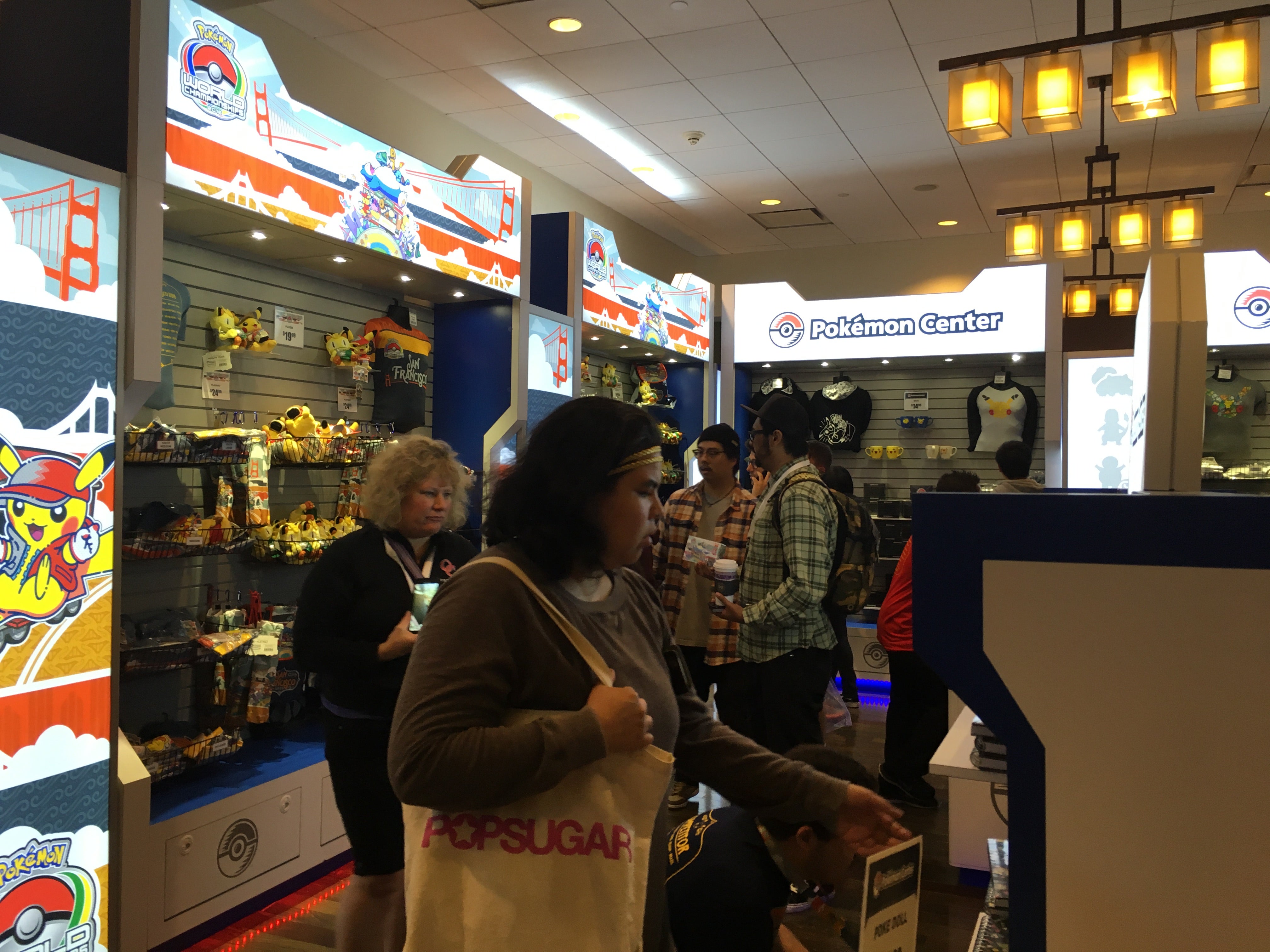 Up the stars from the main entrance was a makeshift Pokémon Center loaded with custom San Francisco-themed merchandise, including a trolley conductor Pikachu. The Pokémon Company International wasn't about to let the masses into the tournament proper, but they were more than happy to sell them plush toys and other souvenirs. And as you might expect, the store was packed.
