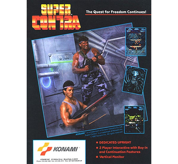 Back when I worked at 1UP.com, some wise guy had hung a printout of the arcade flyer for Contra up in the production team's cubicle.