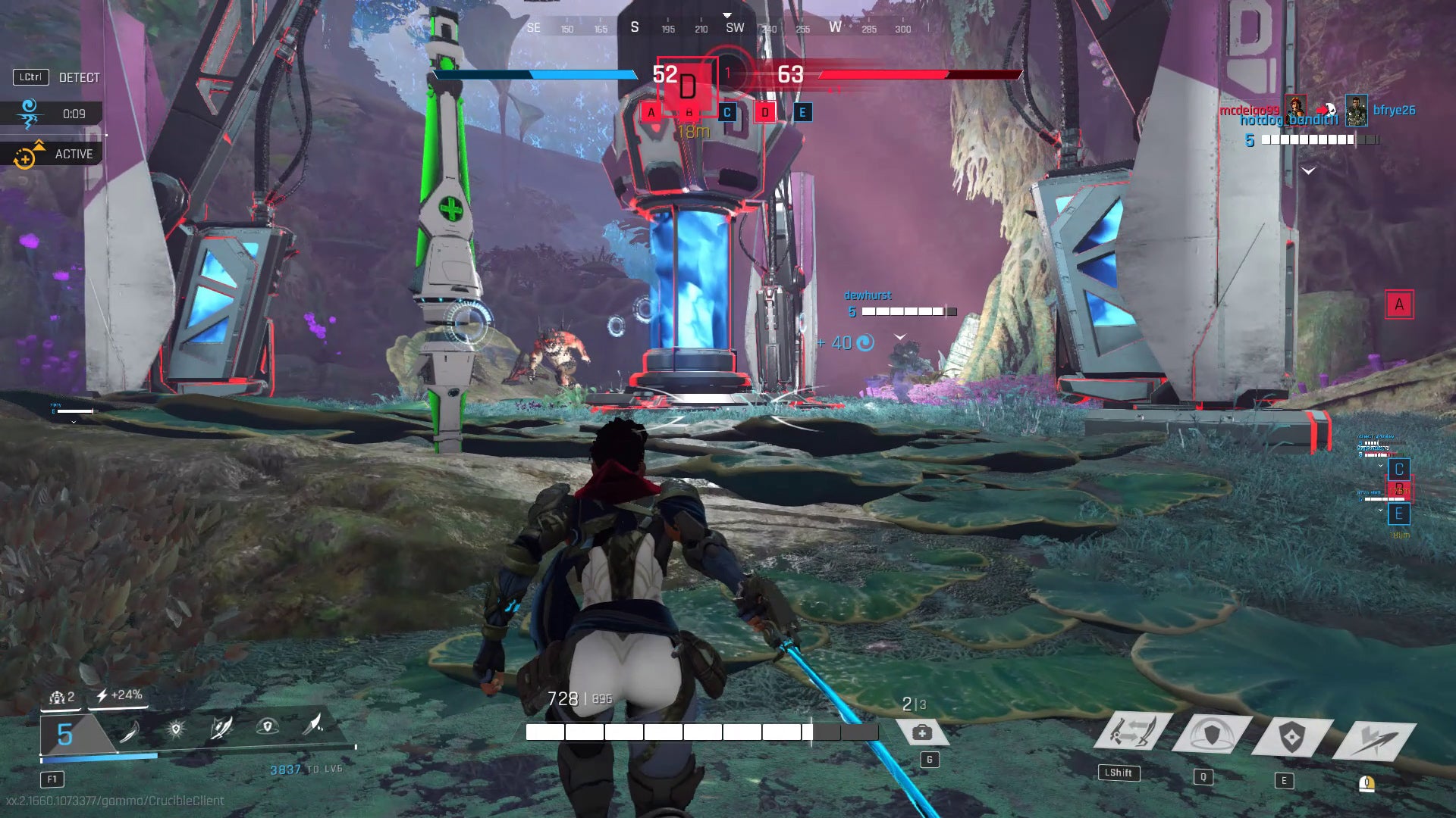 Crucible finds its particular flavor by blending hero shooter gameplay with MOBA and battle royale mechanics. On the battlefield, you collect Essence, an energy source rooted in the planet itself. You'll find Essence by killing NPC monsters and opponents, or by controlling Harvesters around the map. Collecting Essence levels you up, and every hero has an improvement tree that offers bonuses as you level. It splits the game modes between harvesting and combat, so even those without the strongest twitch reflexes can contribute.