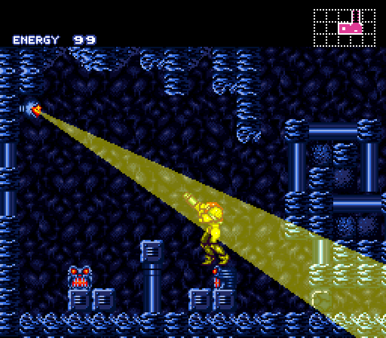 Super Metroid's creators crammed the game with all sorts of detail. From Samus' subtle idle animation and non-mirrored sprite (her main weapon is mounted to her right arm, and don't you forget it) to the countless secret mechanics and Easter eggs, every byte of data invested in Super Metroid served to make its world more immersive, its action more dynamic, and its mazes more devious.