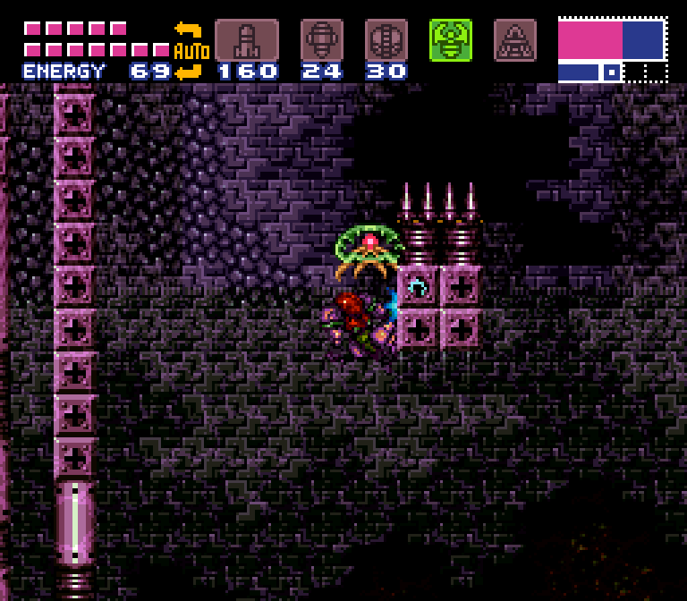 Super Metroid has no hand-holding; it guides players to play the proper way, but it never strongarms them. It gives adventurers the freedom to learn, but also the freedom to fail, to get lost. It reveals its working in subtle ways; for instance, players might never realize that the Super Missile can knock enemies loose from walls on their own, but you're forced to use them for the first time to open a door near where a couple of monsters are hidden along the ceiling. That explosion, required to progress further, dislodges them. If you don't grasp this secondary function of your new weapon, it's not the game's fault; it's because you didn't pay attention when it was giving you its discreet lesson.