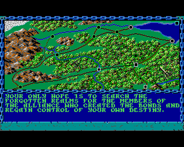 In fact, Azure Bonds had close ties to its Gold Box contemporaries. It was meant to be an expansion of the blockbuster Pool of Radiance and allowed players to carry over their party from the previous adventure. The Wizardry games had pioneered the concepts of retaining a party throughout a multi-part series, though Azure Bonds went about it in a far friendlier manner to newcomers; whereas Wizardry sequel players who had failed to complete a previous chapter of the series were basically out of luck, those just getting into the Gold Box titles without having compatible cross-compatible titles Pools or Hillsfar simply began the adventure with a massive pool of experience to divide among their party members, enough even to allow for multi-classing.